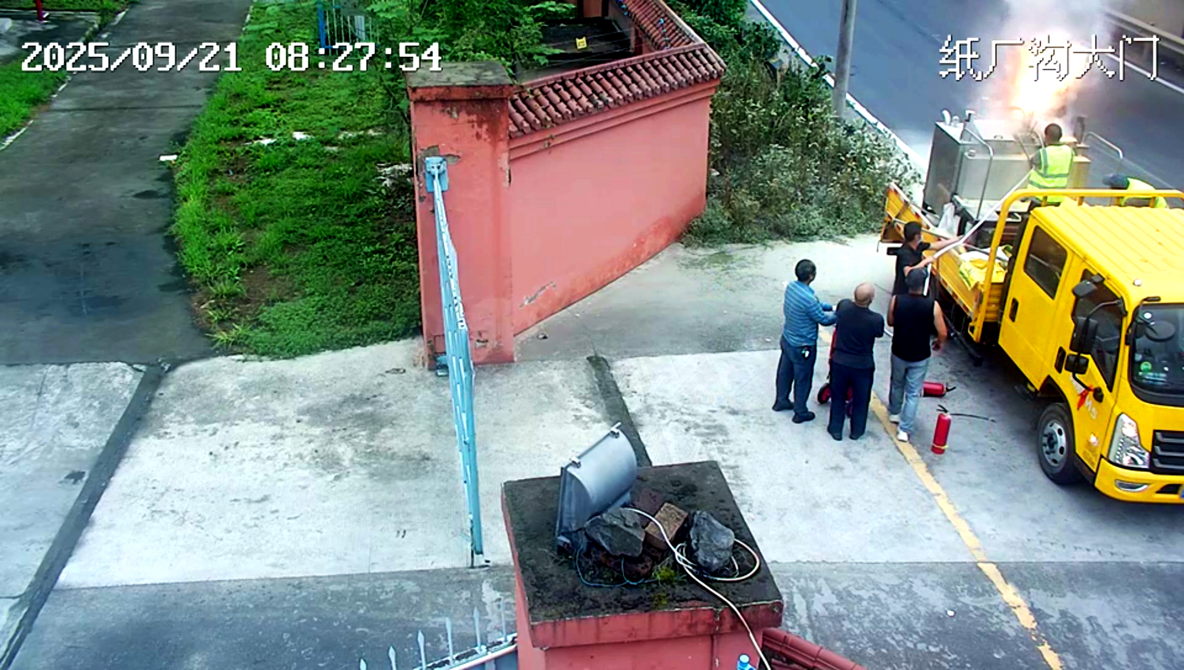 9月21日8点21分,该公司纸厂沟库房大门前的马路上,一辆正在执行道路划线作业的工程车突然燃起熊熊大火。火势迅速扩大,情况异常危急,车辆作业人员立即向距离最近的纸厂沟库房值班人员发出求救信号。